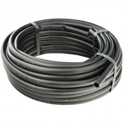 Tube polyéthylène noir basse densité diamètre 16 mm 4 bars épaisseur 1.2 mm pour goutteur. Tube plein pour goutte à goutte En couronne de 25 mètres Utilisation en surface pour micro irrigation Raccordement avec raccords cannelés ou PALAPLAST.