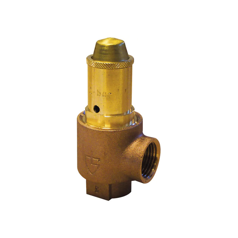 Soupape de sécurité pour installations de chauffage, conçue pour évacuer automatiquement la surpression en cas de défaillance du système de régulation. Construction robuste en bronze avec ressort inox et joint EPDM.