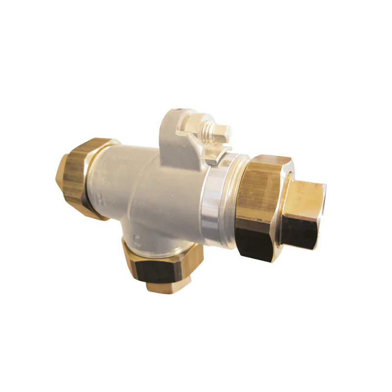 Raccord union femelle destiné aux mitigeurs thermostatiques MTL DN33. Il intègre un filtre et un clapet anti-retour permettant de protéger le mitigeur contre les impuretés et les retours d’eau dans les installations d’eau chaude sanitaire.