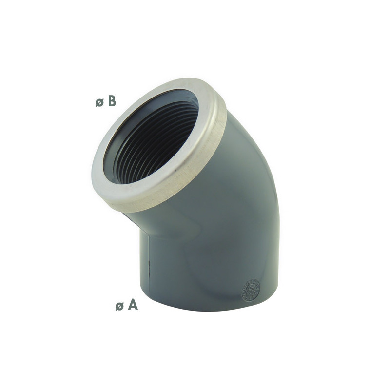 | Désignation | Coude PVC à 45° mixte femelle 1"et femelle Ø32 à coller renforcé inox |