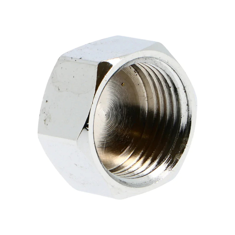 Bouchon femelle en laiton chromé destiné à boucher des sorties sur les installations hydrauliques.