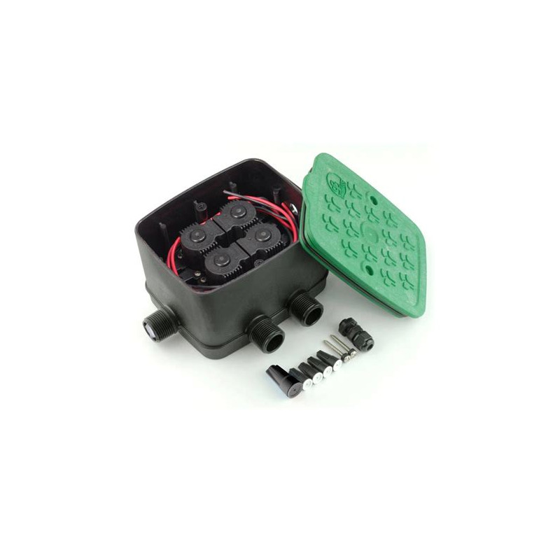 Boîtier d’arrosage compact avec 4 électrovannes intégrées 9Vdc Latch.