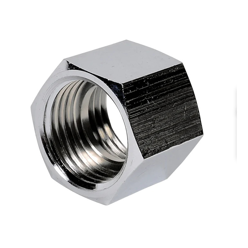 Manchon égal avec butée en laiton chromé destiné à la réalisation de liaisons vissées droites. La butée centrale intégrée permet un positionnement précis et symétrique des éléments filetés lors du montage.