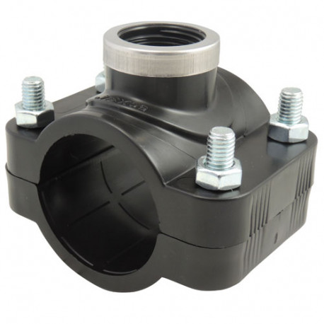 Collier de prise une charge renforcé pour tube PE Diamètre 90mm taraudé 2" à quatre boulons.