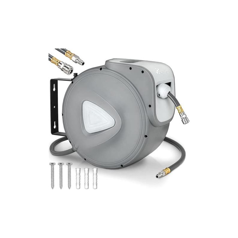 Enrouleur automatique mural livré avec 25 mètres de tuyau Ø12 mm et ses accessoires. Son système d’enroulement automatique avec frein intégré facilite le rangement. Sa conception en polypropylène assure une bonne résistance aux UV et une durabilité en extérieur.